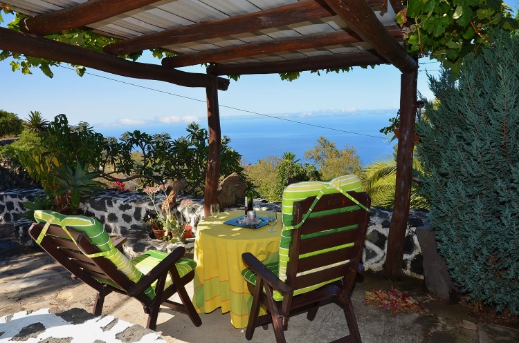 Die alte Bauweise mit den sichtbaren Vulkansteinen und den geweißten Putz, sowie eine offene Holzdecke aus dem Holz der kanarischen Pinie, ist typisch für den antiken Baustil der kanarischen Inseln. Das Ferienhaus liegt auf 650 Metern und hat einen schönen Blick auf den atlantischen Ozean.